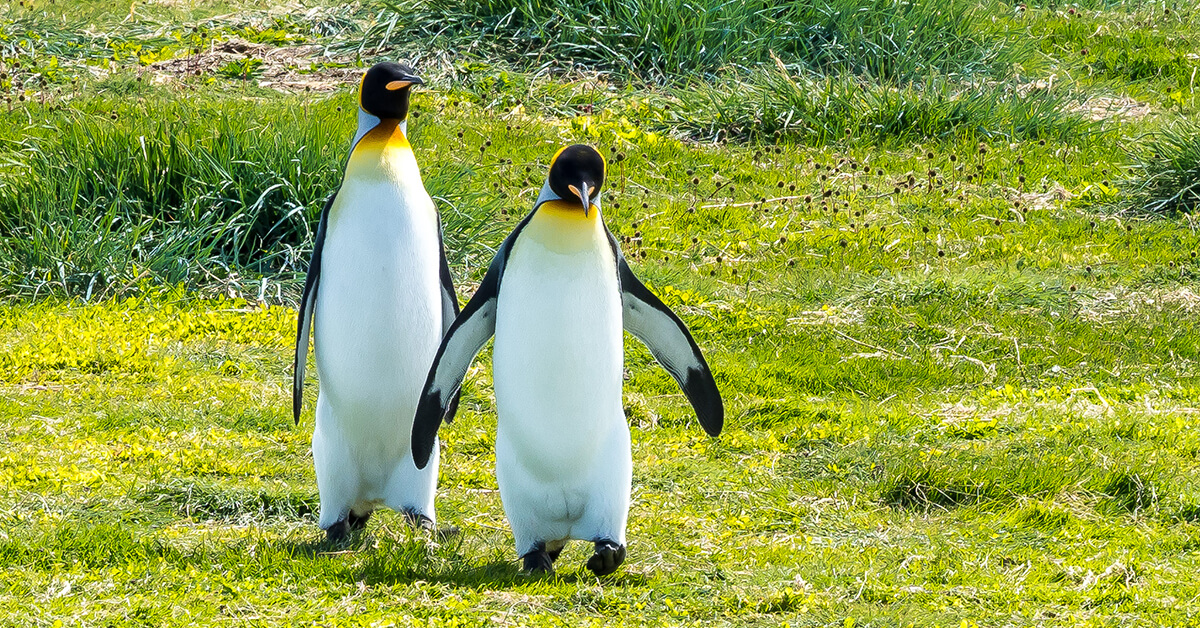 Aber selbstverständlich schieben sich auf jeder Reise aktuelle Eindrücke in den Vordergrund. Krim ist immer wieder fasziniert von Wasser. Ihr Foto von den atemberaubenden Wasserfällen des Rio Iguazú im gleißenden Sonnenlicht zeigt diesen magischen Sehnsuchtsort in Argentinien. Reinhards liebstes Reisefoto ist zur Zeit eine Aufnahme aus dem chilenischen Nationalpark Torres del Paine in Patagonien am frühen Morgen. Und die Königspinguine in Feuerland, Chile, bringen uns zum Schmunzeln.