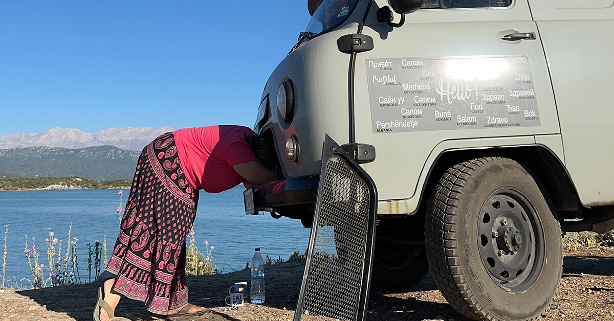 Ich bin jahrelang mit meinen beiden Kastenwagen gefahren, die ich sehr geliebt habe. Dann brauchte ich unbedingt mal wieder eine neue Herausforderung und bin mit Motorrad und Zelt getourt. Und um eigentlich nochmal den Pamir Highway zu fahren, habe ich mir vor einem Jahr einen russischen UAZ Allrad-Van gekauft. Damit war ich in diesem Sommer drei Monate unterwegs – zwar wegen der politischen Gründe nicht in Zentralasien, aber bis in den Iran.