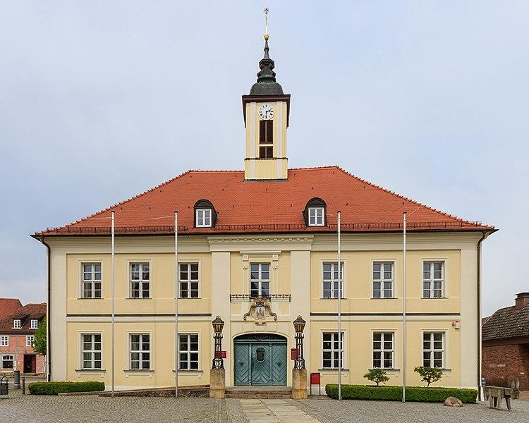 Die erste urkundliche Erwähnung eines Rathauses der Stadt stammt aus dem Jahr 1292. Fundamentreste lassen die Vermutung zu, dass zu dieser Zeit bereits ein gotischer Bau bestand. Ein weiterer Hinweis auf ein Rathaus ist eine Rechnung für Arbeiten an dem Gebäude aus dem Jahr 1560. 1608 erhielt dieses Gebäude eine Uhr. Im Dreißigjährigen Krieg wurde es stark beschädigt und bis auf die Kellerräume zurückgebaut. Auf diesen Resten errichteten die Bürger der Stadt in den Jahren 1698 und 1699 ein neues Gebäude aus Fachwerk. Neben Räumen für die Verwaltung befanden sich zu dieser Zeit auch ein Weinausschank, eine Arrestzelle sowie eine Wachstube einer Garnison in dem Gebäude. 1711 und 1712 erweiterte die Stadt den ursprünglich fünfachsigen Bau um zwei weitere Achsen. Die Stadtbrände in den Jahren 1705 und 1731 richteten am Rathaus kaum Schäden an. 1826 erhielt es die im 21. Jahrhundert noch vorhandene klassizistische Fassade. Damit wollte die Stadt ihrer gewachsenen Bedeutung als Kreisstadt Rechnung tragen. Zwei Jahre später wurde das Fachwerk mit Mauersteinen verstärkt. Im Jahr 1906 stellten die Stadtväter zwei Laternen im Eingangsbereich auf. Heinrich Müller, Vorsitzender der Stadtverordnetenversammlung, stiftete zu dieser Zeit das Stadtwappen über dem Eingang. Die beiden Seitenflügel wurden in den Jahren 1923 und 1924 angebaut. 1992 bis 1999 erfolgte für rund 7,5 Millionen DM eine umfangreiche Sanierung. 2,4 Millionen DM kamen dabei aus dem Programm Städtebaulicher Denkmalschutz.