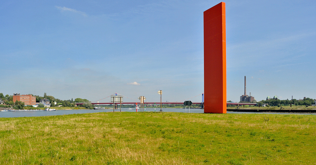 Die 25 Meter hohe Skulptur steht an der Mündung der Ruhr in den Rhein und symbolisiert die Stadt Duisburg als Hafen- Kultur- und Industriestadt.