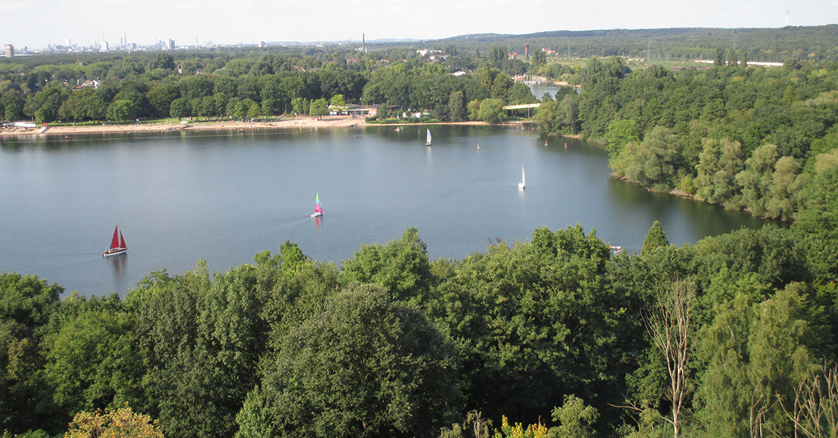 Der Wolfssee im Süden von Duisburg bildet zusammen mit fünf anderen Seen die Sechs-Seen-Platte.