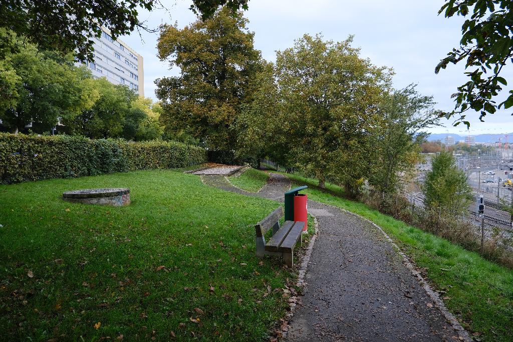 Mit einladenden Grünflächen und Sitzgelegenheiten bietet der Parc Bernasconi zahlreiche Möglichkeiten zur Entspannung.