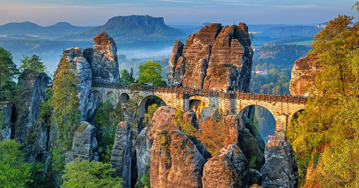 Von der Basteibrücke bietet sich ein atemberaubender Blick über das Elbtal.