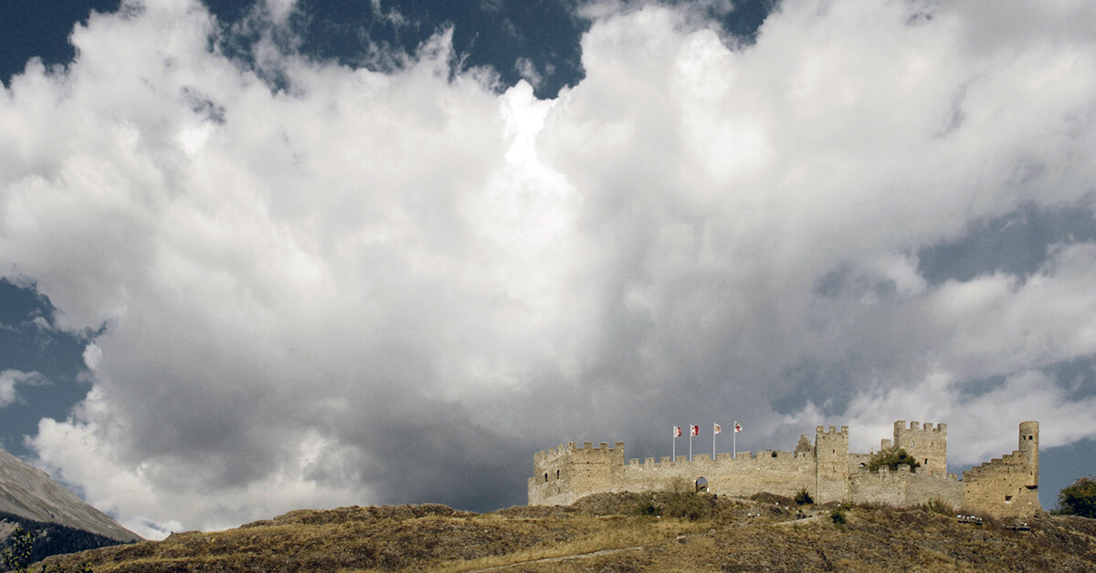 Gelegen ist Schloss Tourbillon auf einem Hügel, der fast das gesamte Tal überblickt.