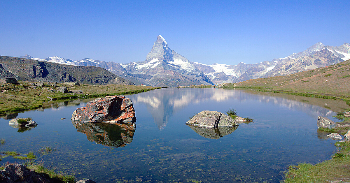 Im Stellisee werden die berühmten Fotos der Spiegelung des Matterhorns geschossen.