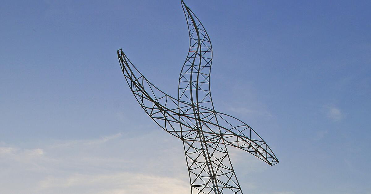 Ein weiteres Highlight ist der Zauberlehrling bei Haus Ripshorst. Der schwungvolle Strommast ist vom Rhein-Herne-Kanal aus besonders gut zu erkennen.