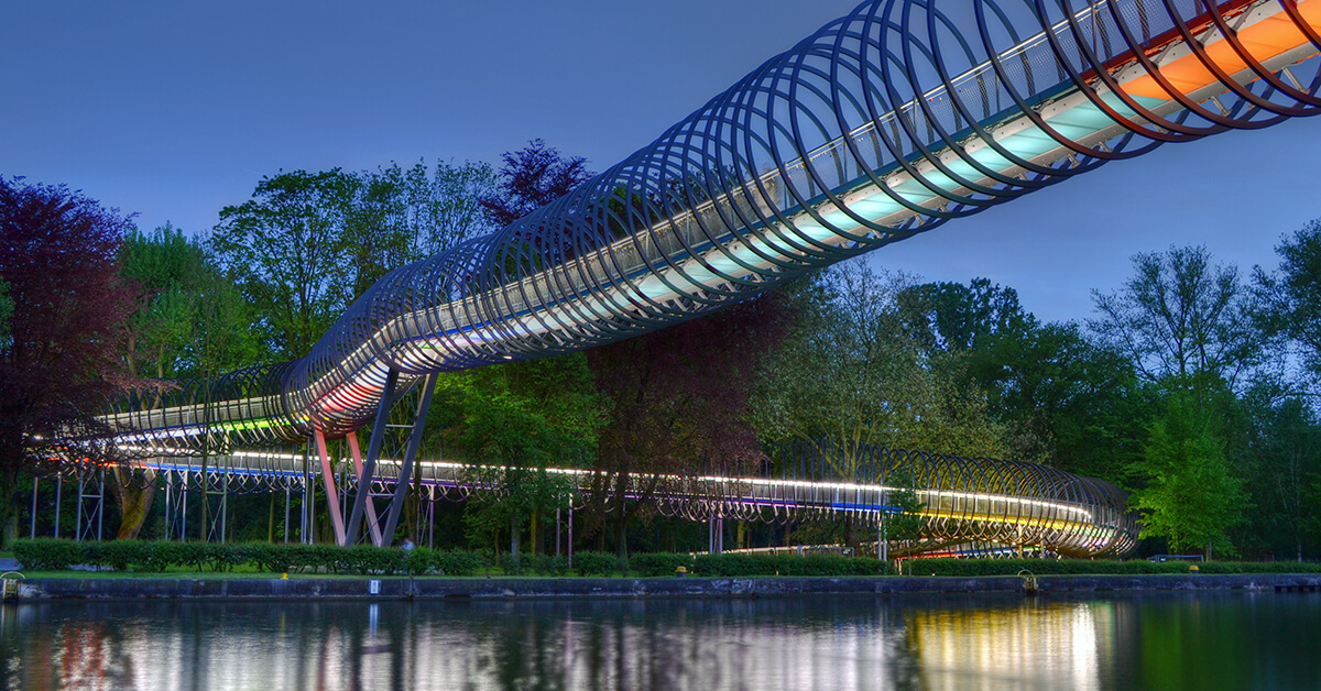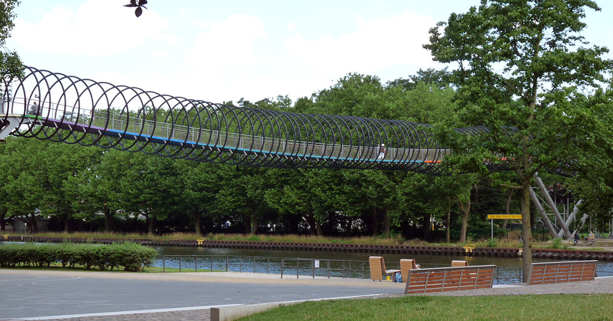 Ein echter Geheimtipp ist die bunte Rehberger-Brücke, die auch unter dem Namen „Slinky Springs to Fame“ bekannt ist.