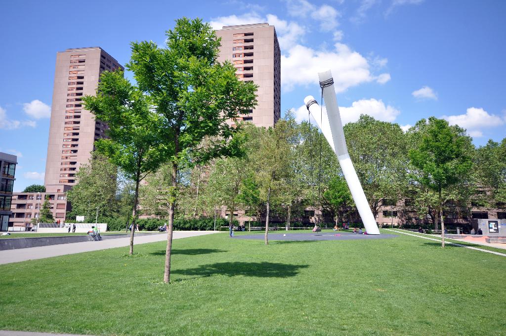 Mit einladenden Grünflächen und Sitzgelegenheiten bietet der Biblothekspark zahlreiche Möglichkeiten zur Entspannung.
