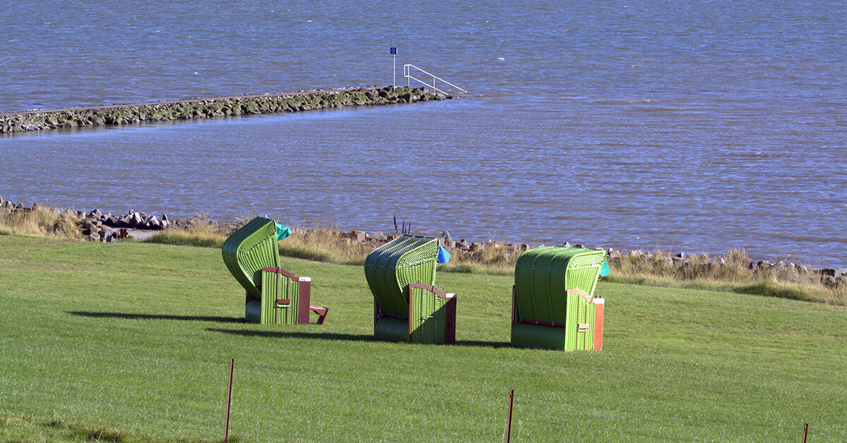 Auf der Insel findest du übrigens keinen Sand, dafür stehen die gemütlichen Strandkörbe auf den vielen grünen Wiesen am Ufer.