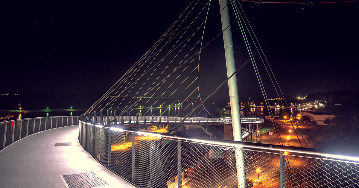 Eine weitere beeindruckende Sehenswürdigkeit auf Rügen ist die außergewöhnliche Fußgänger-Hängebrücke in Sassnitz.