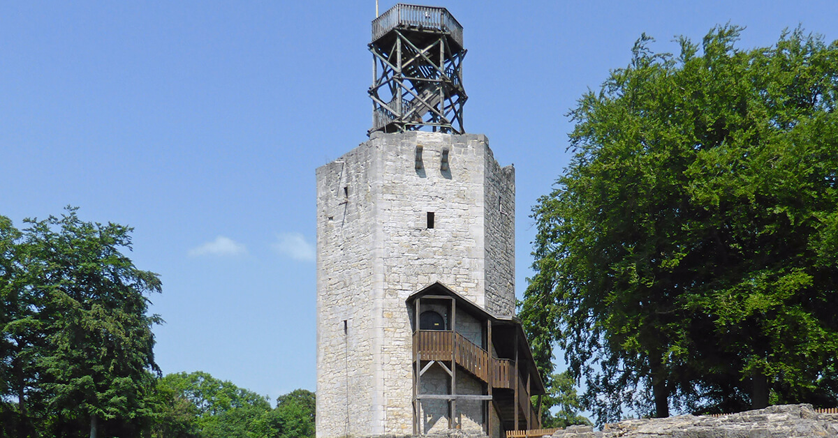 Inzwischen gibt es eine neue Aussichtsplattform auf dem Bergfried, der bei gutem Wetter einen herrlichen Blick auf die umliegende Landschaft bietet.