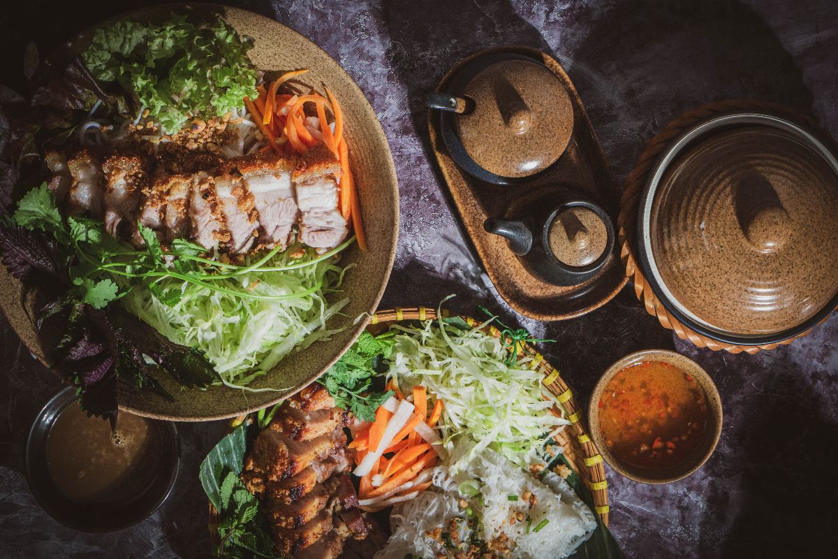 Ähnlich wie in vielen anderen asiatischen Küchen, zählt auch in Vietnam Reis zu den absoluten Grundnahrungsmitteln. Auch Reisnudeln werden oft und gerne gegessen und bilden die Grundlage vieler Gerichte. Außerdem bestehen die meisten Speisen aus großen Mengen Gemüse und vergleichsweise wenig Fleisch. Zubereitet werden alle Speisen für gewöhnlich im Wok und auf offenem Feuer gebraten.